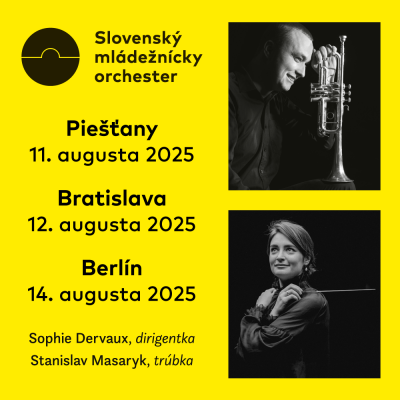Vstupenky na koncert 12. 8. (12€ / 6€) sú dostupné v predpredaji v sieti Ticketportal: Slovenský mládežnícky orchester | TICKETPORTAL