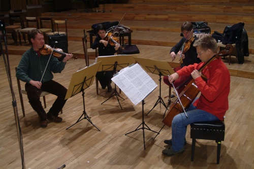 Július Fujak a The California EAR Unit po koncerte v Red Cat Theatre, Los Angeles