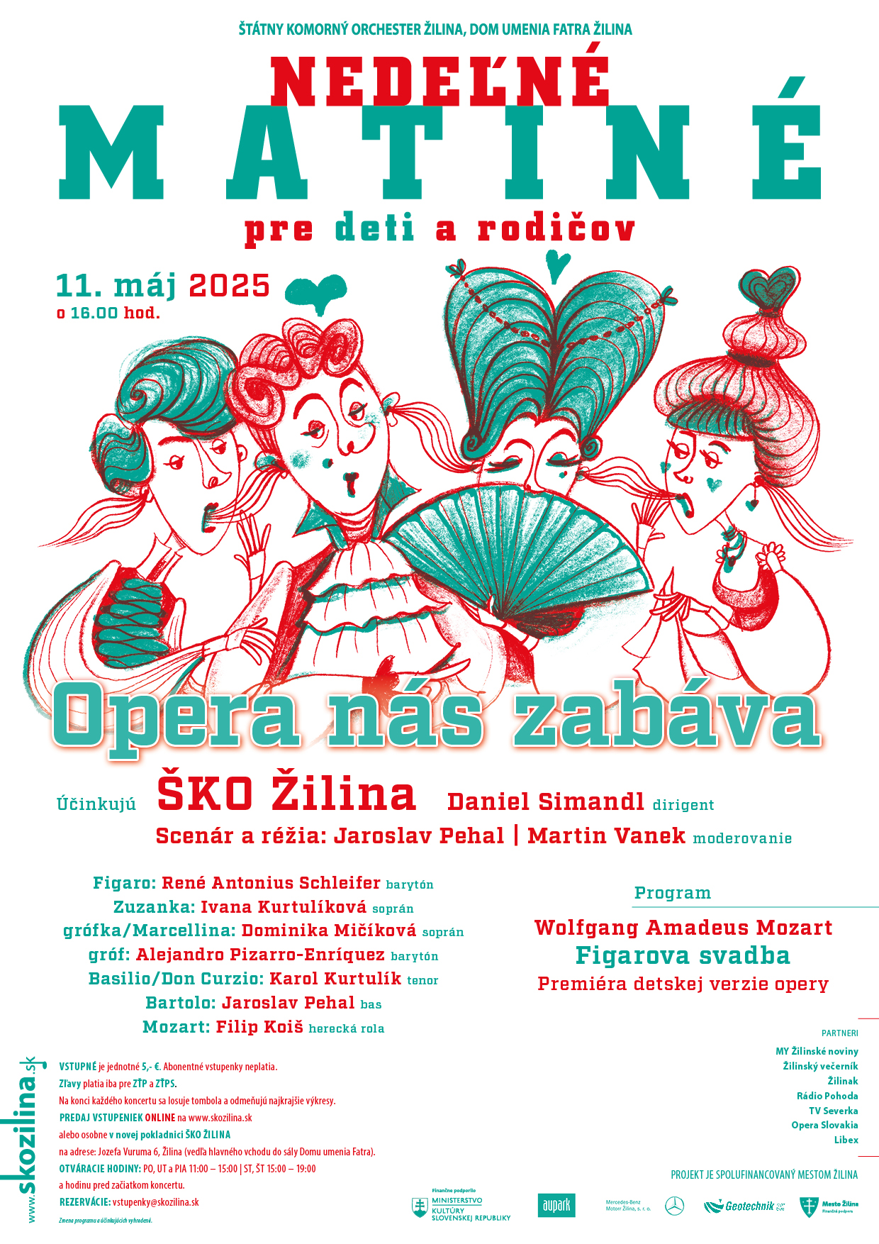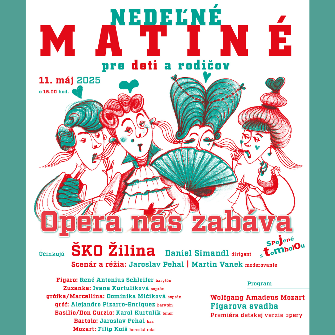 Orchestrálne matiné z cyklu Opera nás zabáva, na ktorom zaznie premiéra detskej verzie opery Figarova svadba od W. A. Mozarta, pod dirigentskou paličkou Daniela Simandla.